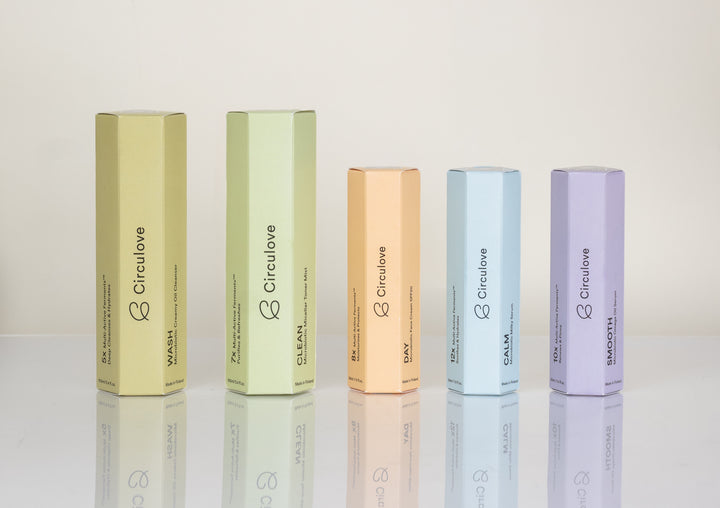 CALM is a highly effective, lightweight serum designed to soothe and hydrate sensitive skin. It contains a total of 12 fermented active ingredients and has an optimal pH of 5.0 for skin health.